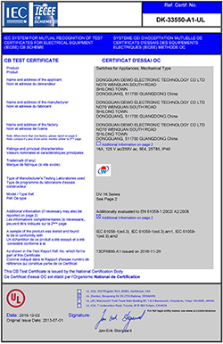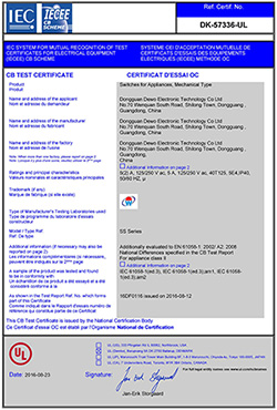 德傲微動開關CQC CB CE證書正式下發(fā)